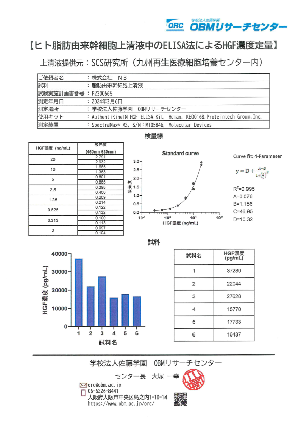その液体の中には生理活性物質(成長因子、タンパク質、サイトカイン、エクソソーム等)と呼ばれる細胞活性のカギとなる因子が数百種類が大量に含まれています。
