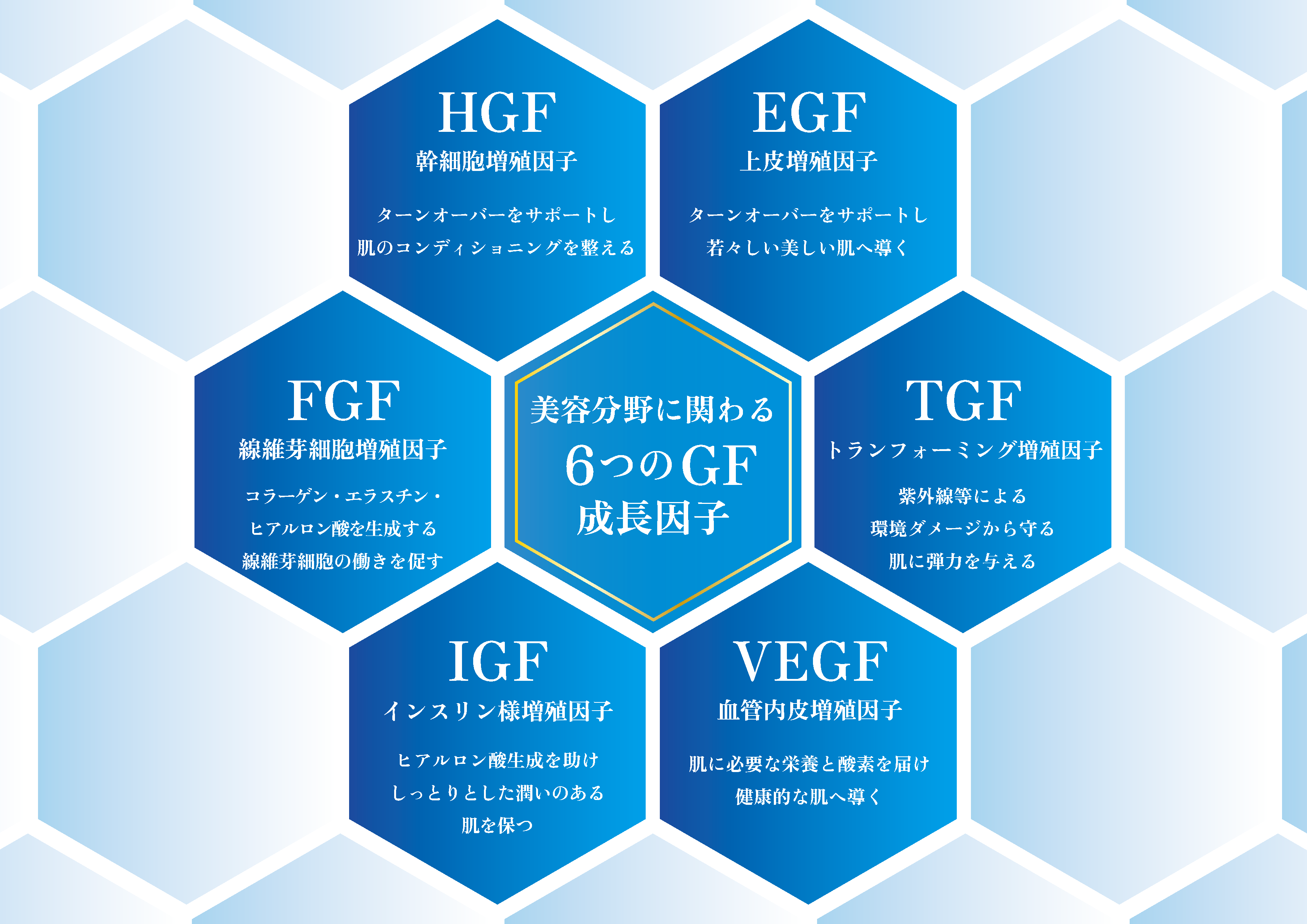 グロースファクター(成長因子)は、体内に存在するタンパク質の一種で、細胞の増殖や活性化を促す働きがあります。